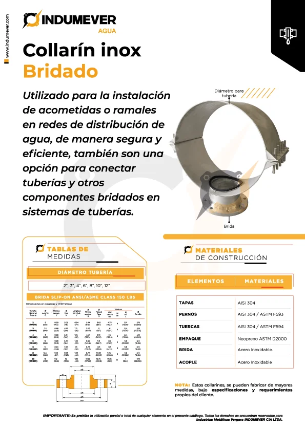 Collarín inoxidable bridado es fabricado en plancha de acero inoxidable AISI 304.